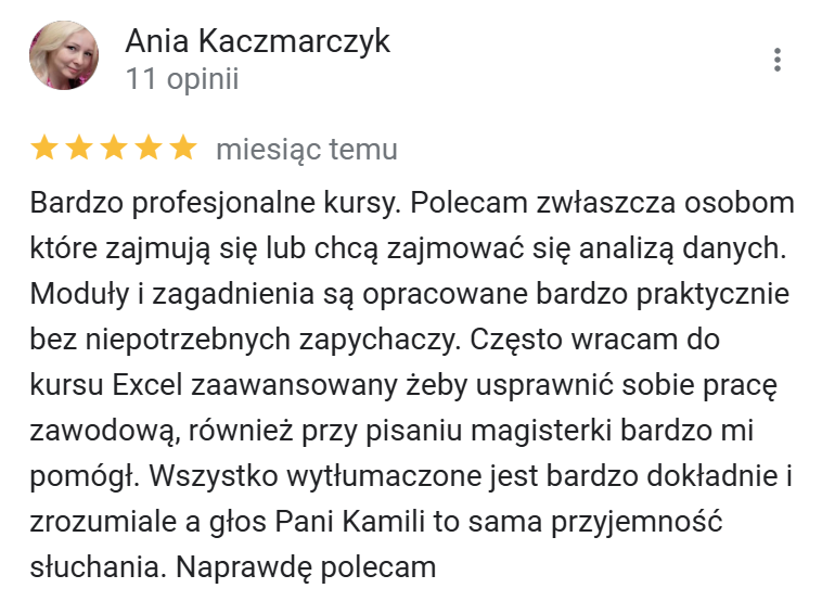 Nauczysz się oczyszczać i przygotowywać dane tak, by były gotowe do efektywnej analizy i tworzenia precyzyjnych raportów. Nauczysz się usuwać błędy, duplikaty i nieścisłości.